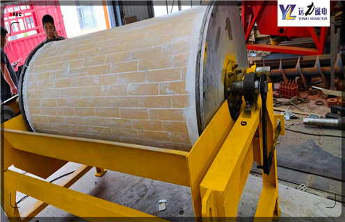 分选矿物通过振动给料器均匀地送到分选筒的上部,旋转的筒体把非磁性物料抛离筒体,磁性物料受到强磁场力作用吸向筒体,用分矿板很方便、精确地将磁性、非磁性物料分离。如低品位磁铁矿、河砂、钢渣的分选,经本机初选抛去多余尾矿,使贫矿品位得到富集。干式磁选机要求被分选的矿物干燥,颗粒之间可以自由移动、成独立的自由状态,否则会影响磁选效果,甚至会造成不可分选的后果。